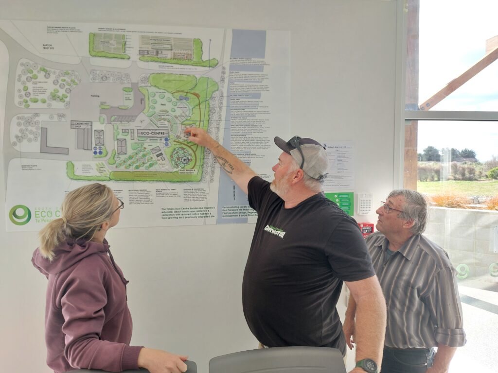 The wider landscape plan is derived from permaculture elements to provide demonstration edible gardens, local NZ native species, an outdoor kitchen and nature play. The vision is to learn by doing at the Eco Centre.